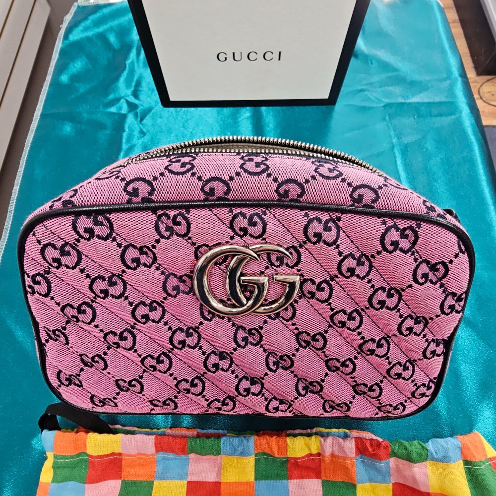 Experience luxury with the Gucci GG Marmont Shoulder Bag, elegantly crafted in pink Diagonal Quilted GG Canvas. Its petite silhouette embodies sophistication, while the iconic GG logo narrates a grand legacy. Limited to 50 exquisite pieces, with Serial Number H034480681, this bag is your style confidante. ID: 30336.
