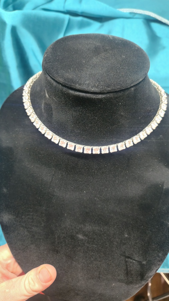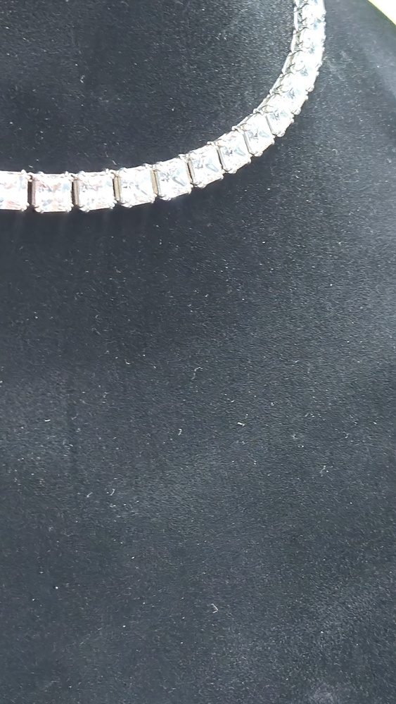 Stainless Steel Female White 0.000 38.26gms Necklace Sz:15 1/2" Matrix Tennis necklace Square cut, White, Rhodium Plated